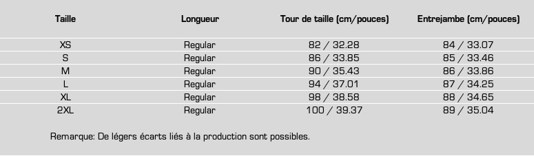 La taille est ajustée à l'aide de sangles élastiques réglables en continu. Les inserts en mousse dans la taille assurent un grand confort.